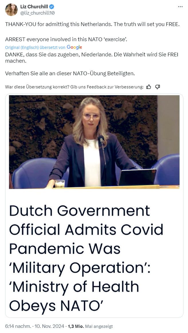 Seit (mindestens) vier Jahren macht die Vermutung durch alternative Medien und skeptische Kreise die Runde, dass die Pandemie keine rein medizinische Krise, sondern eine geplante Militäraktion war. Nun hat die neue niederländische Gesundheitsministerin Fleur Agema in einem bemerkenswerten Statement bestätigt, dass die Covid-Strategie in den Niederlanden unter den strikten Anweisungen der NATO, den USA und der nationalen Terrorabwehrbehörde NCTV (Nationaal Coördinator Terrorismebestrijding en Veiligheid, was auf Deutsch Nationaler Koordinator für Terrorismusbekämpfung und Sicherheit bedeutet) stand – eine Operation gegen die eigenen Bürger.