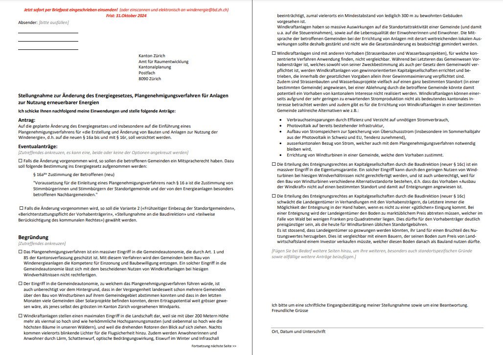 ❗Eine Einwendung machen (bis 31. Okt. 2024)