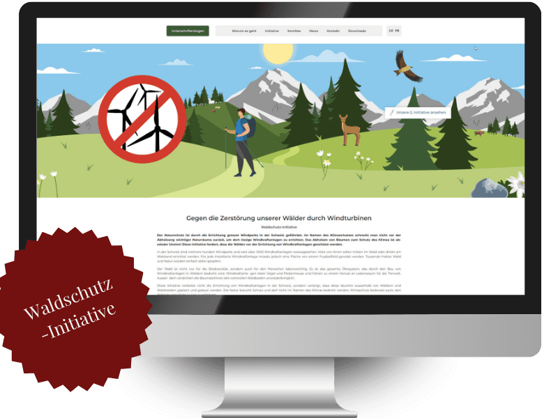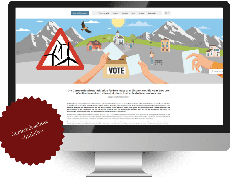 Doch in der Schweiz sind weit über 1’000 Windturbinen geplant, die Mehrheit davon im Wald oder am Waldrand. Zudem könnte es in Zukunft nicht mehr möglich sein, dass betroffene Gemeinden über Windparks abstimmen dürfen. Es es droht eine massive Abholzung unserer Schweizer Wälder im Namen des Klimaschutzes.
