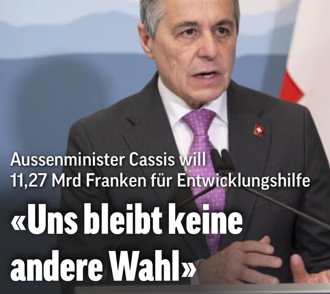 Herr Cassis; Sie haben immer eine Wahl! Es ist einfach stossend, wenn Sie Geld, welches Ihnen nicht gehört, an so korrupte Länder verschenken, wie die Ukraine eines ist. Unsere Neutralität ist durch den Bundes-, National- und Ständerat zur Farce verkommen. Es werden Waffenlieferungen durch die Schweiz zugelassen; ein Schutzstatus ‚S‘ wird eingeführt, der die Ukrainerinnen und Ukrainer anderen geflüchteten Menschen eine bevorzugte Behandlung/Besserstellung gewährt, was unfair gegenüber Kriegsflüchtlingen aus anderen Ländern ist.